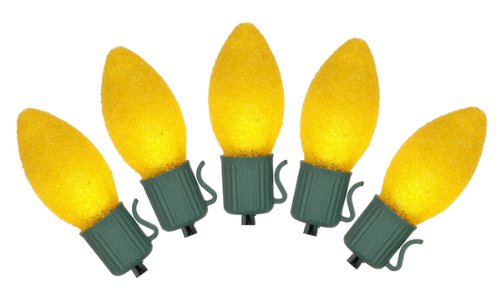 Set of 10 Battery Operated Sugared Yellow LED C7 Christmas Lights - Green Wire Review