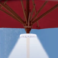 This portable umbrella or camping light has 48 LED's and runs on 4 AA batteries. Highly efficient , multi-functional and portable. The life of the LED's is more than 100,000 hours. With its round design you get light in all directions. This light is perfect for Umbrella's (comes with a Rubber spacer) fits over a 1.25" pole. For smaller poles affix a layer of electric tape around pole before adding the light. Perfect for camping, outdoors (especially in tents), or even to light up a dark closet. It comes with a built in hanger so you can easily place it wherever light is needed. It is easy to use with a simple on and off push button. battery operated