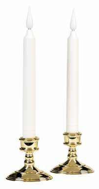 Sold as each. 9". Ivory. Kit includes (2) 9" ivory candles, (2) suction cups, and (2) brass candleholders. LED light bulb with realistic flickering flame. Built-in timer - candle will come on the same time every day for 6 hours. Manual on/off. Uses 2 "AA" batteries. 2 pack. Manufacturer's number: FPC1452. Country of origin: China. Distributed by .