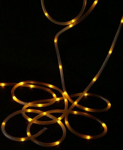 This is one new 23 ft.-total length- of YELLOW BATTERY LED rope lights. The lighted length is @17 ft. with a 6 ft. lead cord to place the battery box panel. The tube is 3/8" across or 1 cm. Can be used inside or outside