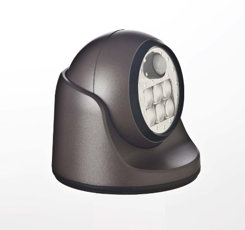 "LIGHT IT" LED WIRELESS PORCH LIGHT * Color: Bronze * Swivel head to aim light * 6 LED lights * Motion activated on/off with motion sensor * LED floodlight technology - ultra bright, glare free and wide beam * Gasketed and weather proof for use in or outdoors * Energy efficient LEDs lasts 100,000 hours * Lamp head rotated to direct light * Requires 4 C batteries not included * Installs easily anywhere with just a screwdriver and 2 screws (included) * No wiring needed * Boxed