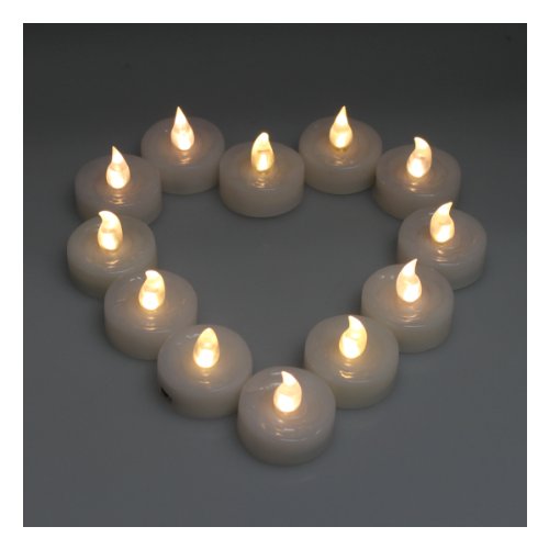 Set of 12 Tealights LED Candles Run on Batteries Warm White Flameless and Unscented Feature