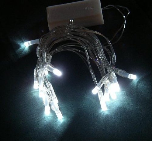 We have these made just for us. This is for 4 sets of NEW Battery LED 15 WHITE LIGHTS per set-Rice/fairy lights. WHITE Lights with CLEAR Wire Cords. This beautiful set of 15--each Light is 3/16" across- the WHITE LED lights are specially designed for using in places that have no power supply. Also beautiful for weddings and other romantic settings. Requires 2 AA batteries (Not Supplied) Battery pack has on/off switch